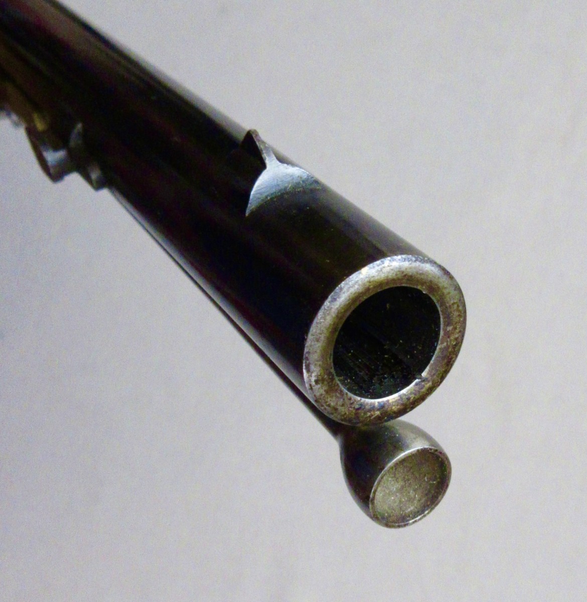 Remington Zouave percussion rifle in.58 caliber, appears to be unissued, or hardly any use. It has a bright bore, no visible primer residue around the cone/breech area. The barrel retains nearly all the original blue finish, with only a few thinning area on the surfaces overall. The lock retains just about all the case colors. Bore is bright.