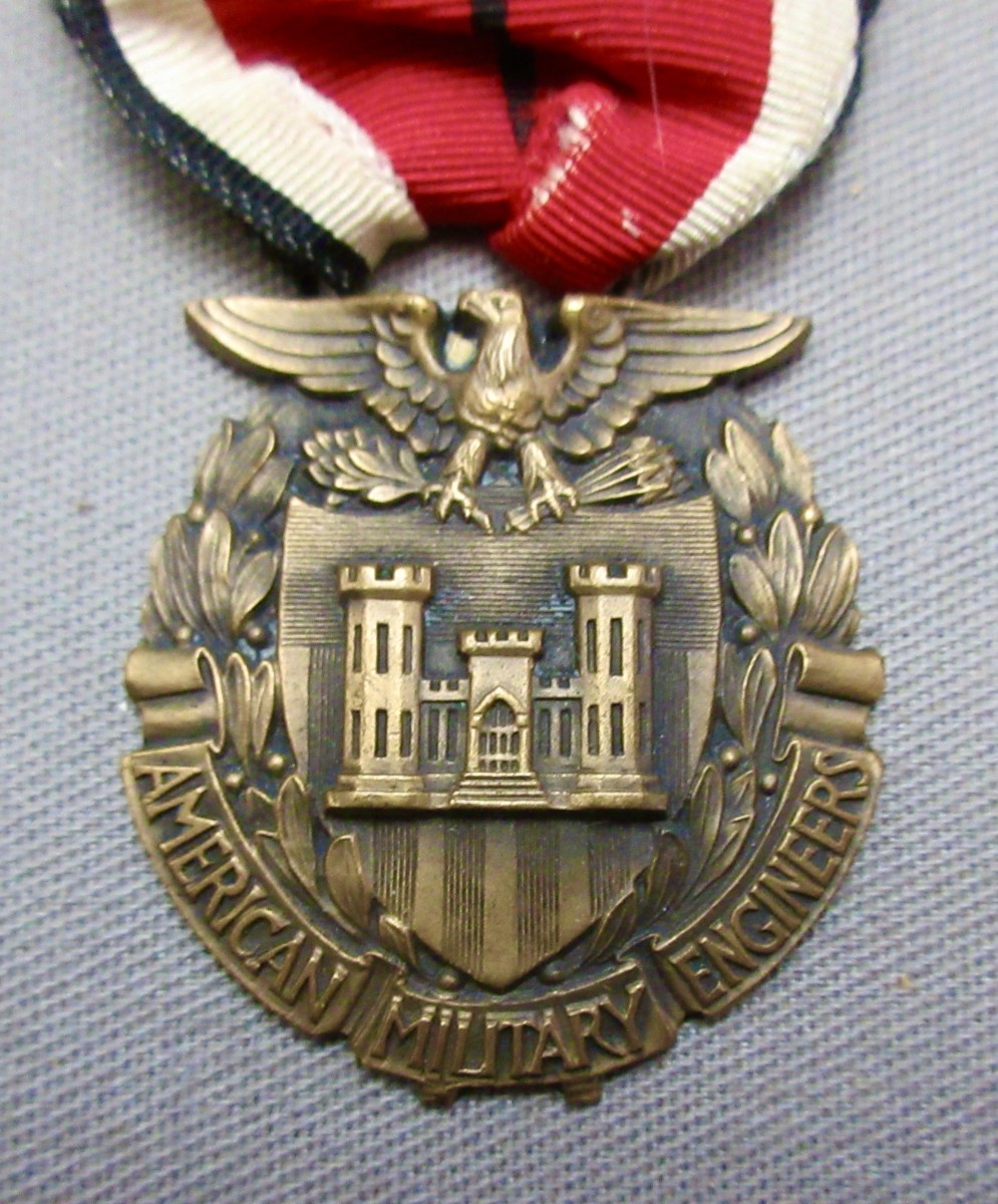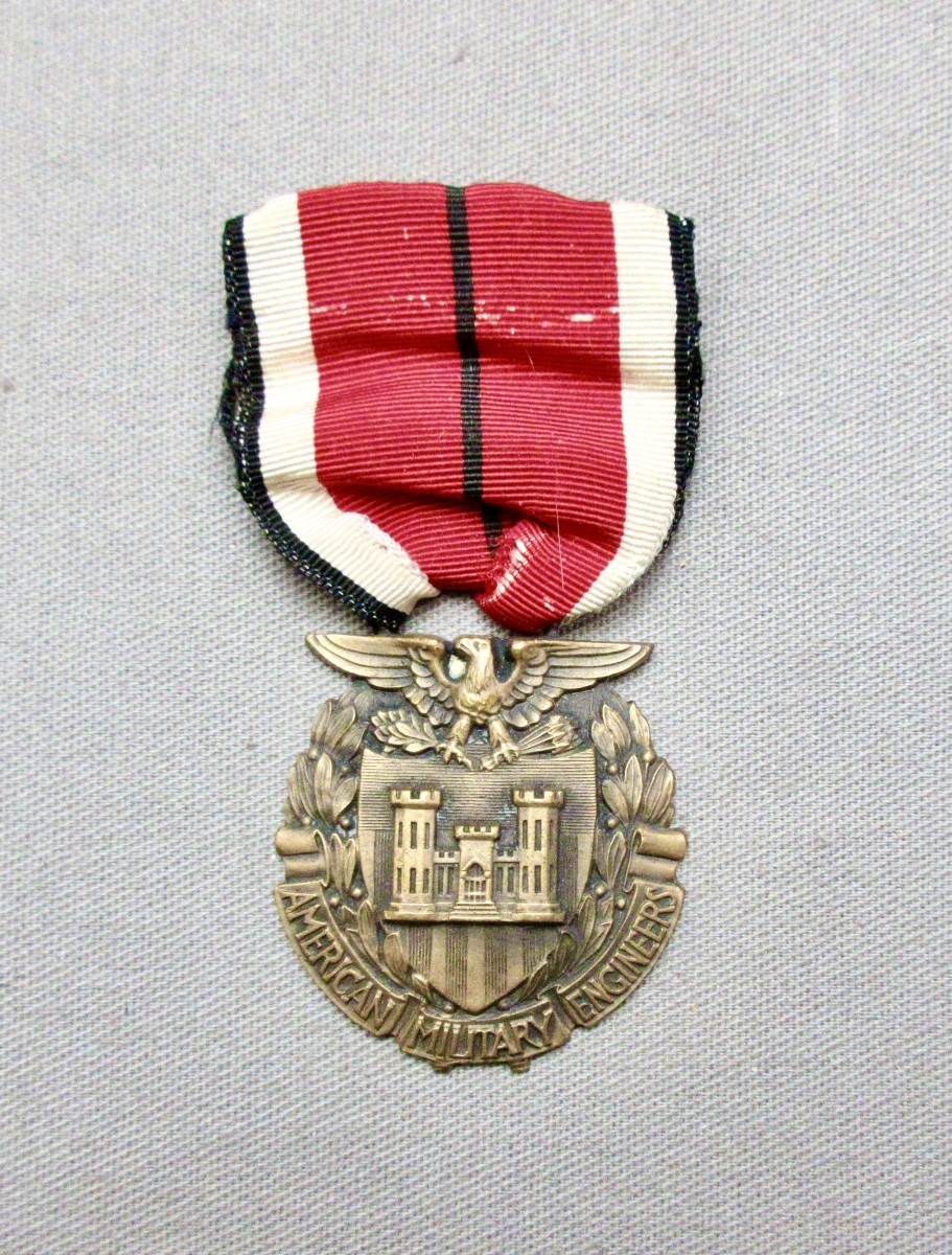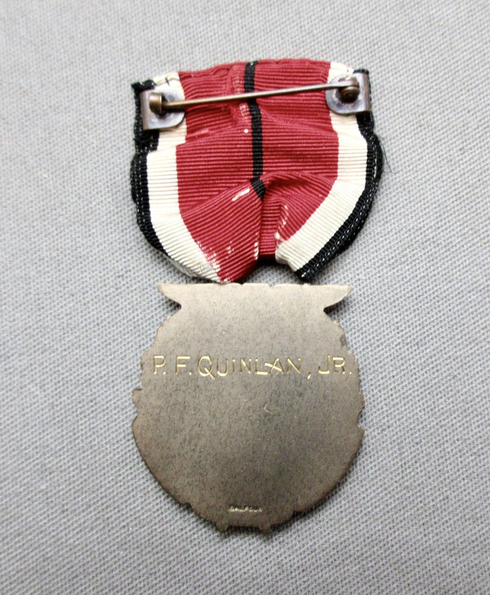 Society of American Military Engineers Medal in Bronze Identified to “P.F. Quinlan, Jr. A quick search failed to fine information on him. Split brooch. Some wear to the ribbons on high spots.