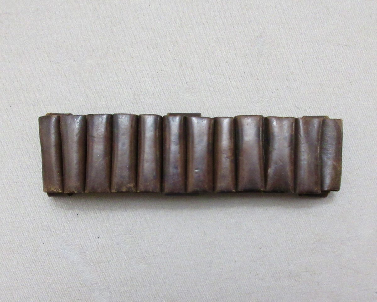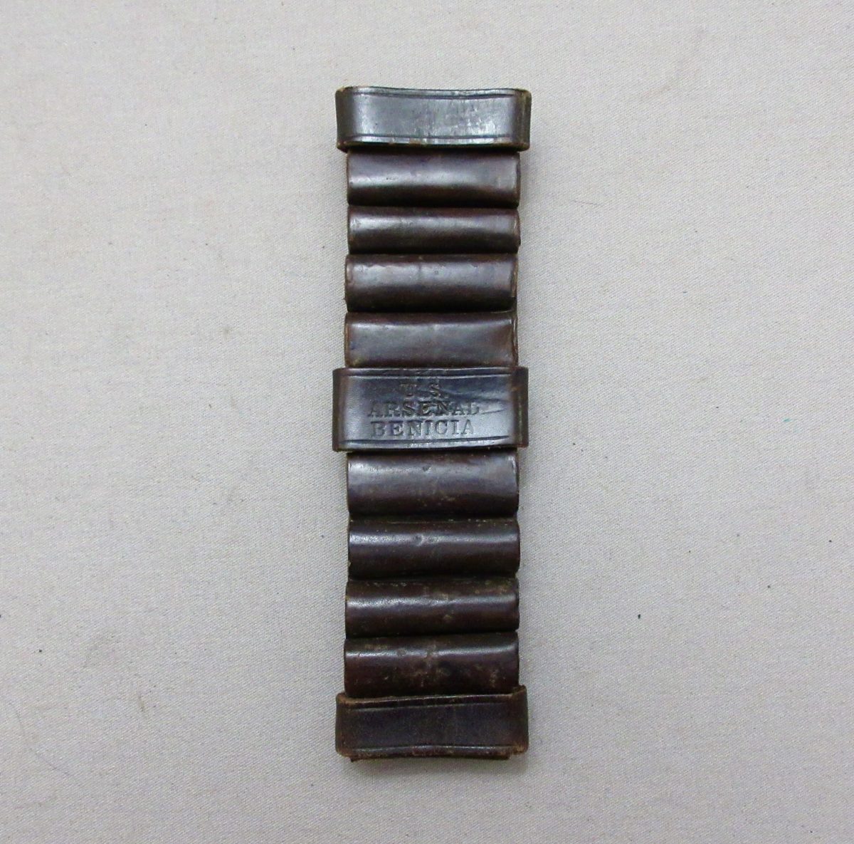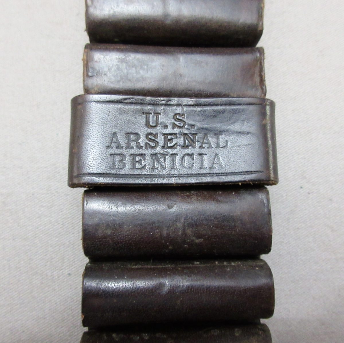 Benicia Arsenal Pattern 1874 Hazen Loops For .45/70 Cartridges, designed to slide onto the cavalry saber belt to provide more and easier access to ammunition while mounted, etc. Made at the Benicia Arsenal, California. Designed to carry on box of 20 cartridges.