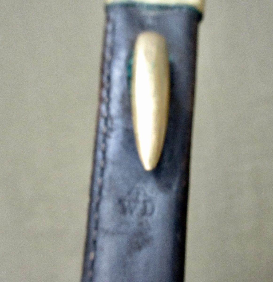 The overall length is 19 inches. The leather is marked with the British Board Arrow with “WD” stamped below (War Department).