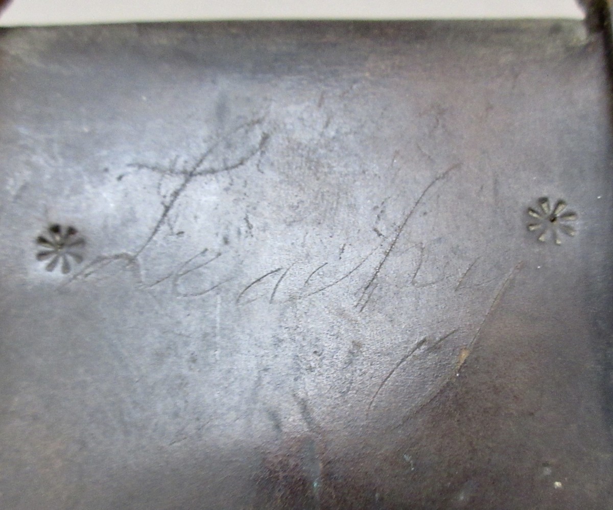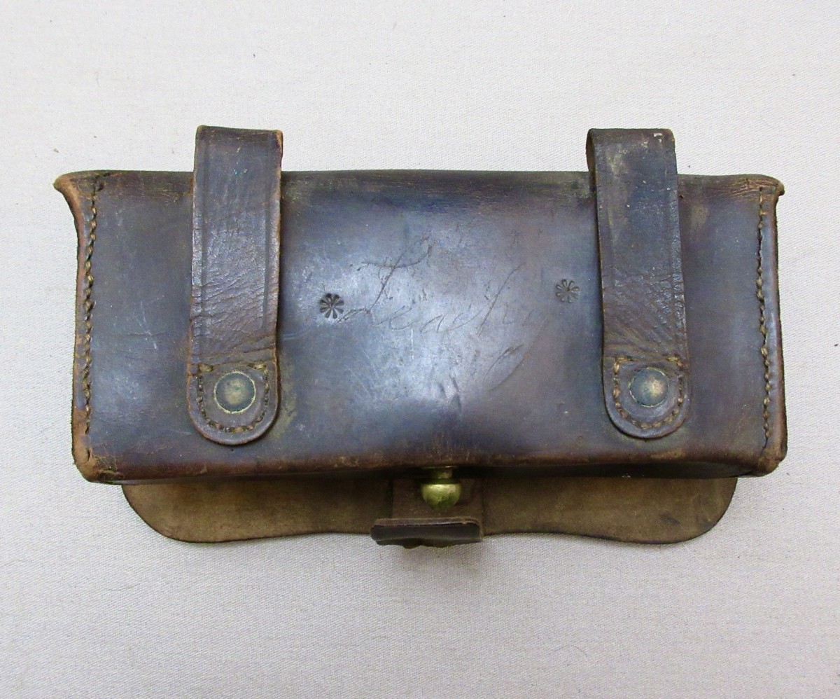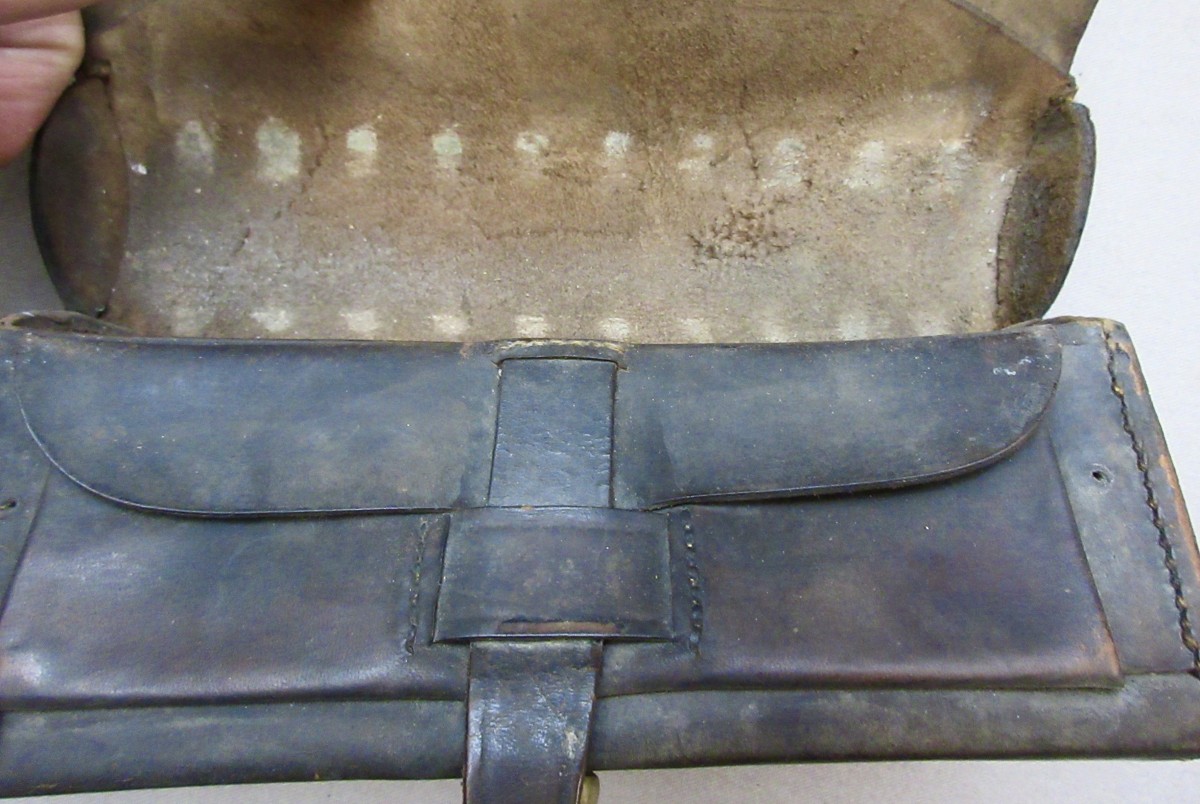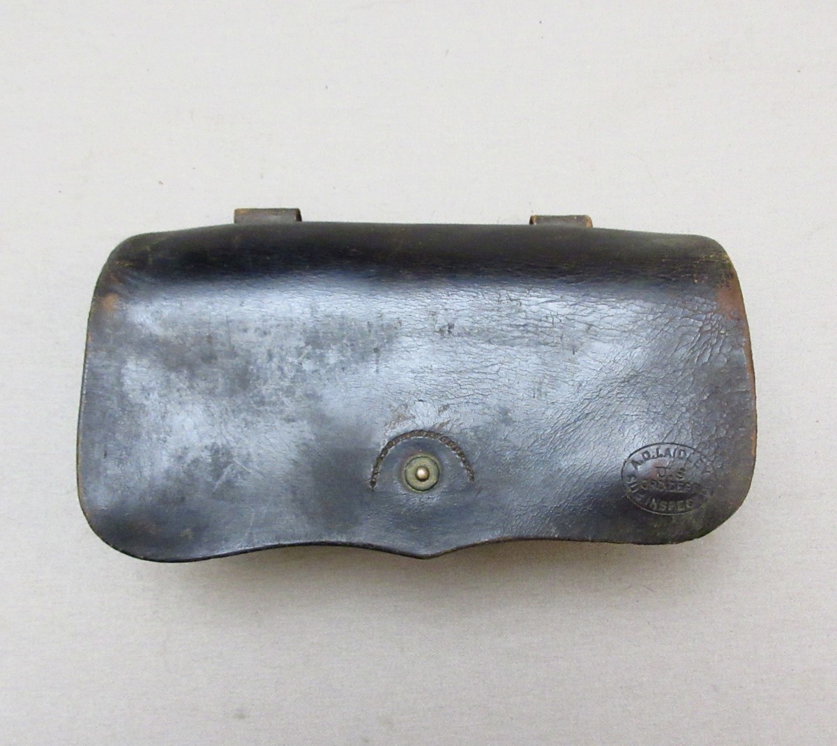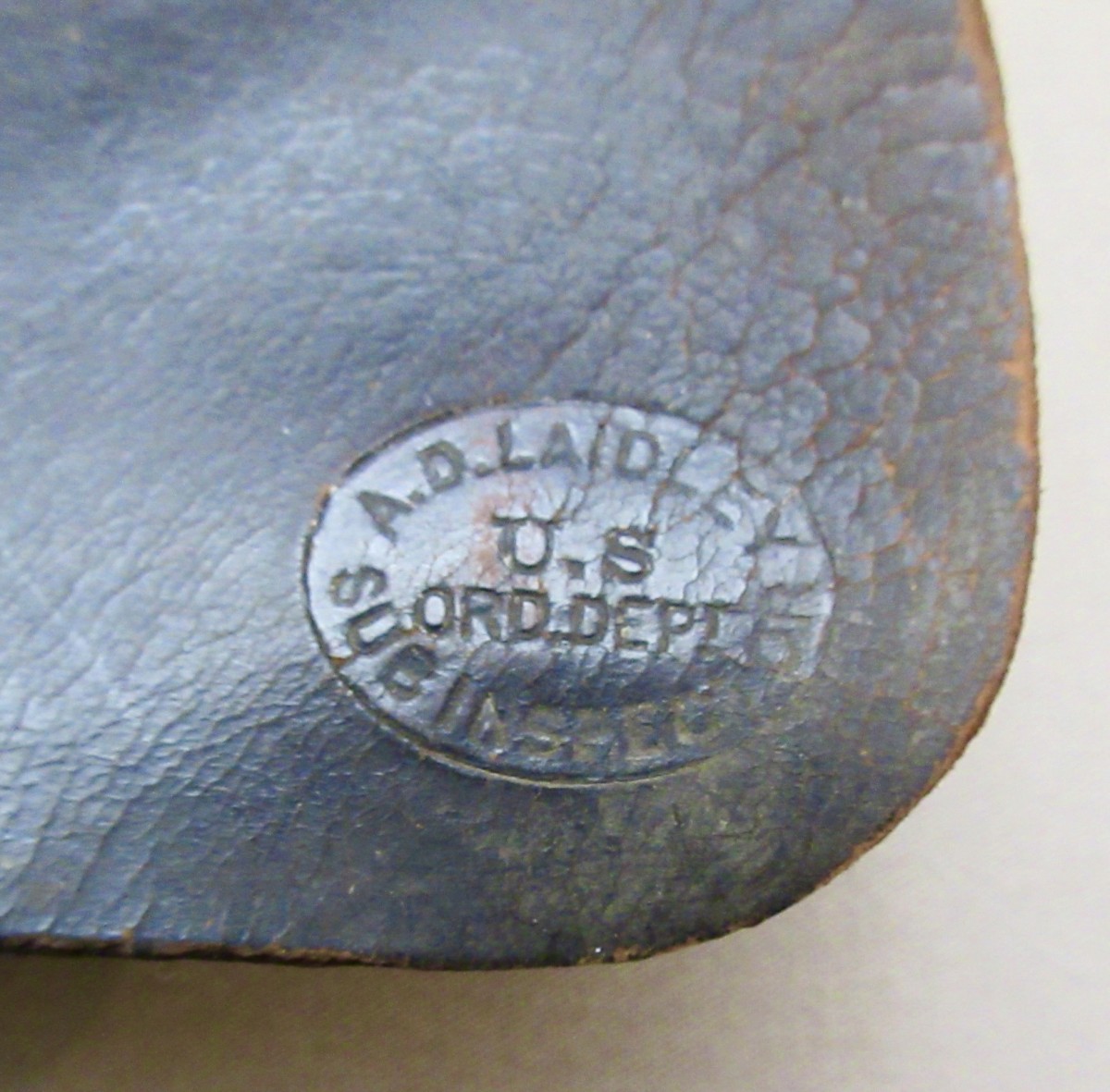 Civil War “Common” Carbine Box.  These boxes were made to accept wood blocks that were used for a number of carbines with common ammunition.  Made by E. Gaylord, Chicopee, Mass, and marked on inner tool pouch lid. A.D. Laidley, U.S. Sub Inspector stamp on outer flap.