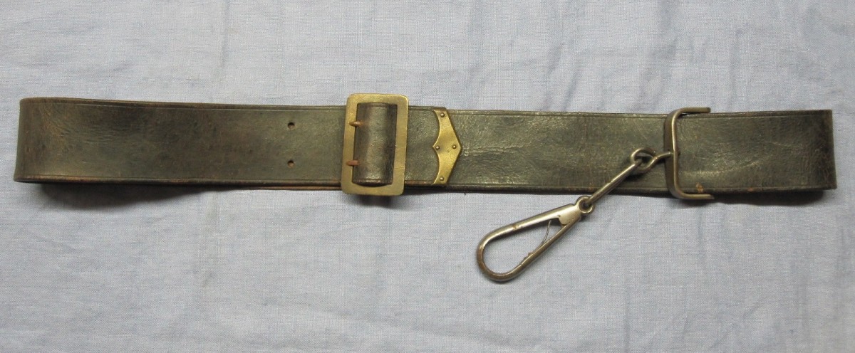This sling is untouched and retains its original issue length. The snap swivel is marked, “O. B. NORTH & Co., NEW HAVEN, Ct. The bridle leather sling, bears no marking of any kind. The leather has an original untouched surface, with slight crazing, normal wear with scuffing and small areas of flaking (very minor). The buckle is unmarked. The sling is sewn to the buckle without use of rivets. Probably an early war issue sling. Overall condition is fine.