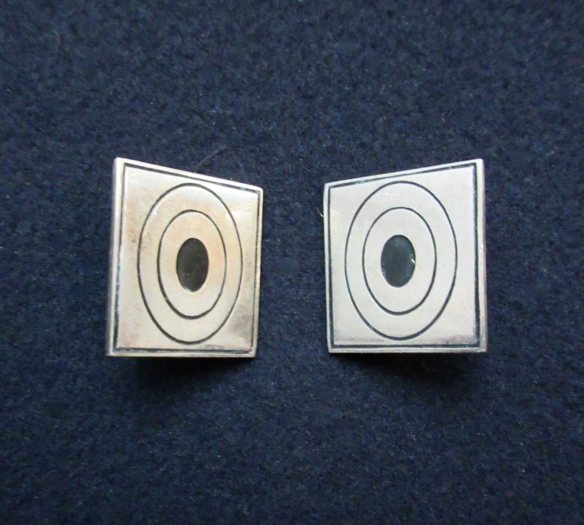 Early 20th Century Marksman Collar Buttons – Pair, U.S. Army issue, no markings. Square shaped with oval 3 ring target.