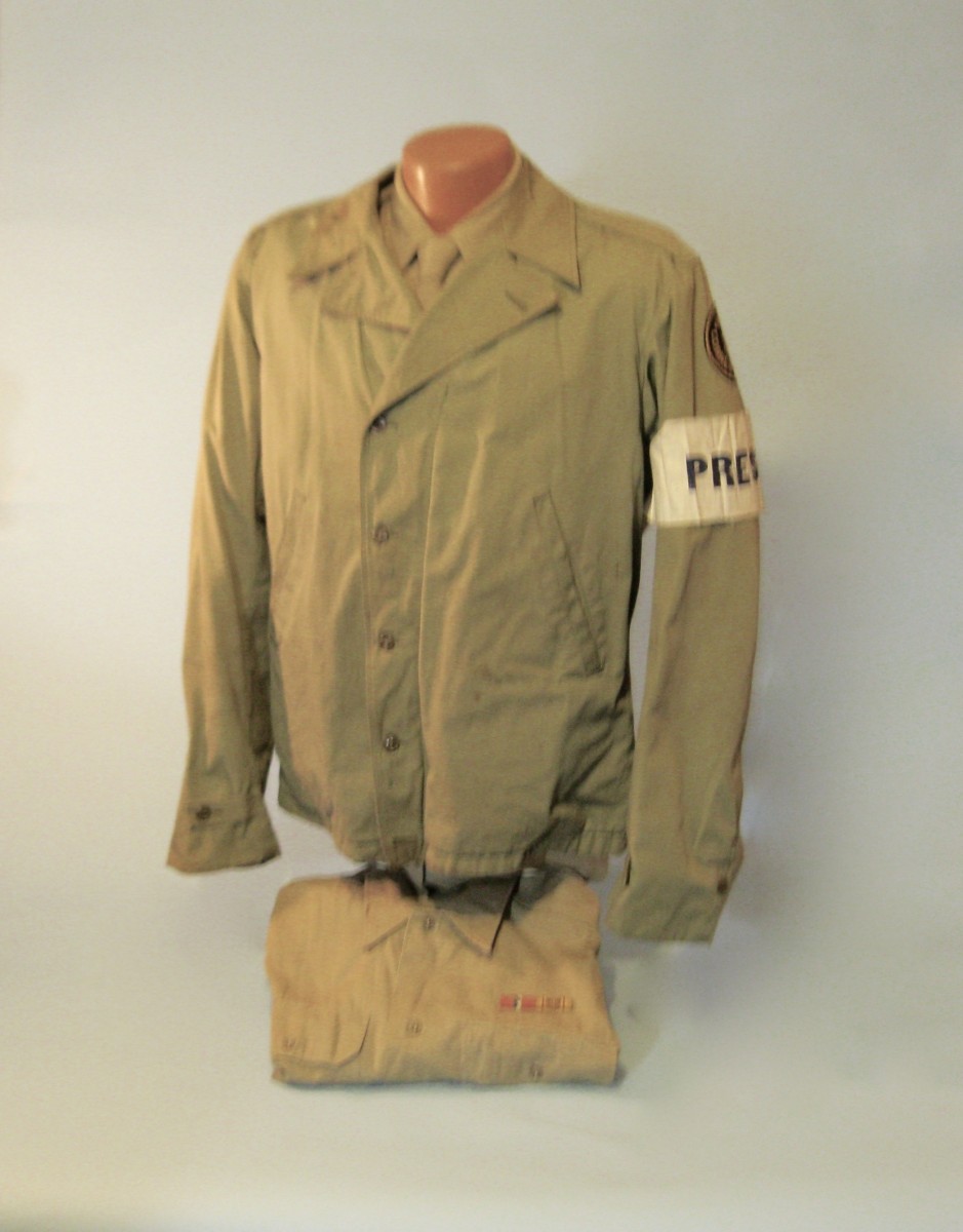 Survivor of the Coconut Grove Fire in Boston, one of the first embedded correspondents with troops in WWII, accompanied B-29 fire bombing raid on Tokyo, and ONLY civilian to go on a submarine combat patrol in WWII. Unauthorized for wear by civilians, the ribbons bars on his shirt were cleared for wear by General Douglas McArthur.
