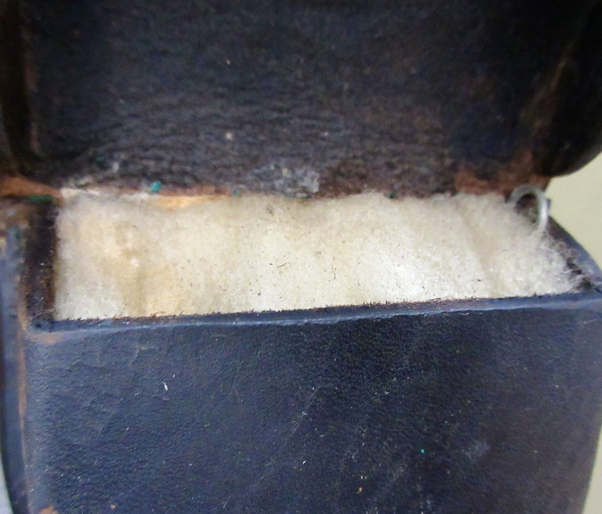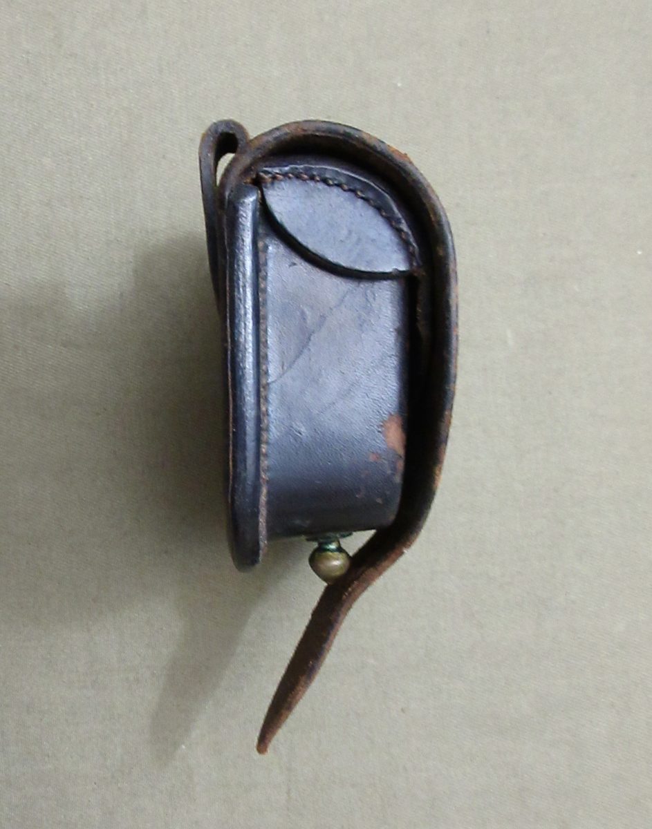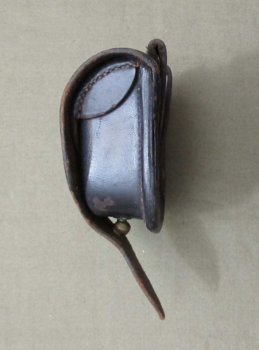 Fine Civil War Cap Box Complete With Wool & Cone Pick, with “R. WHITE / ORDNANCE / INSPECTOR” stamped in an over cartouche on flap. A “D” is stamped on the back.  An issued box with slight wear, most of which is on the edges. A better than average box found these days.