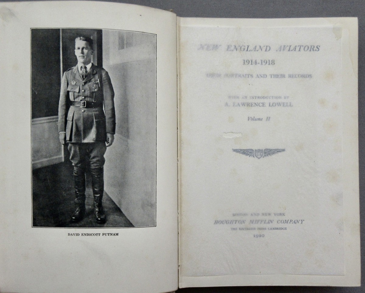 New England Aviators 1914 – 1918 Their Portraits And Their Records, Volume II. Riverside Press Cambridge, 1920. Hard cloth covers, 480 pages, portraits for each pilot listed.