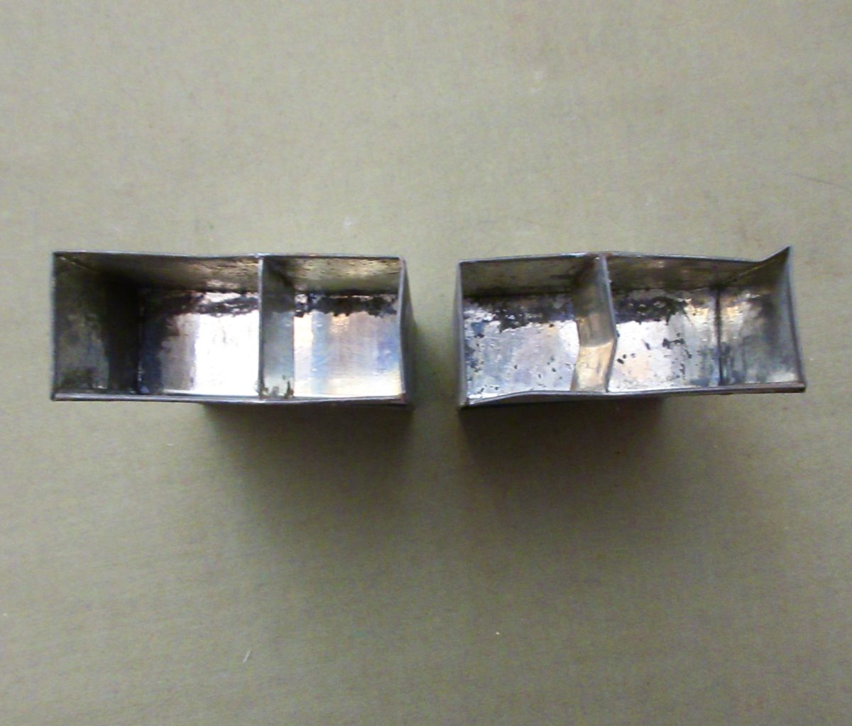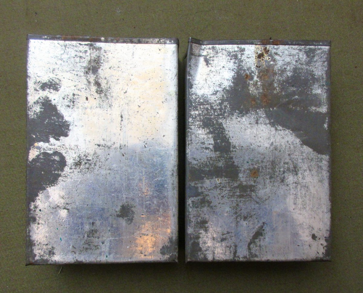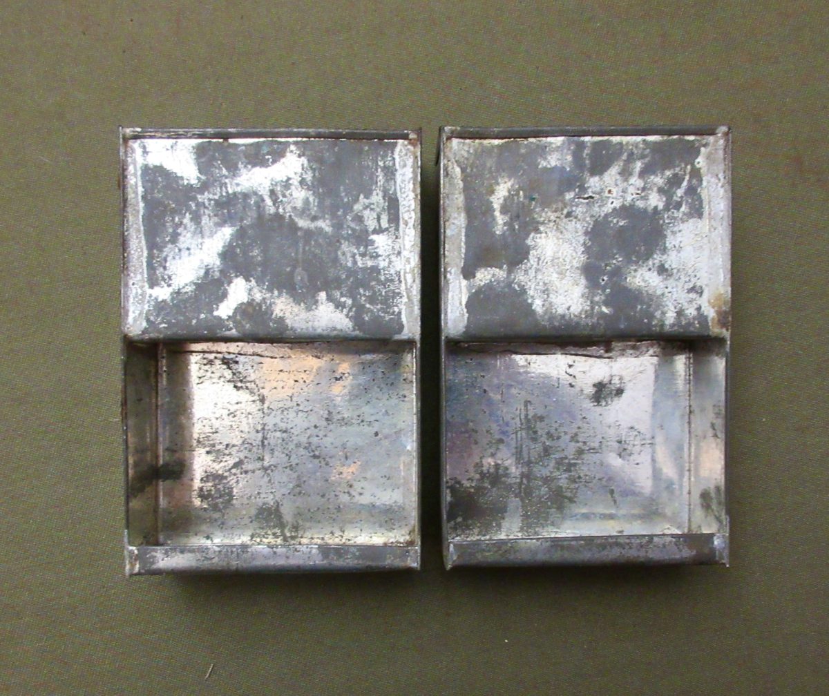 Original Pair of 1858 Cartridge Box Tins.  A matching pair of tins showing much of the original luster mixed with aged patina.  Complete with both upper section dividers.