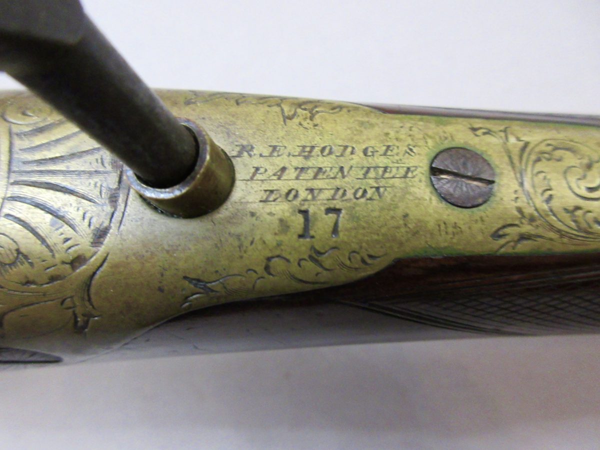 Hodge’s patent date and serial number “17” are located on the upper brass frame, and front section in the wood.