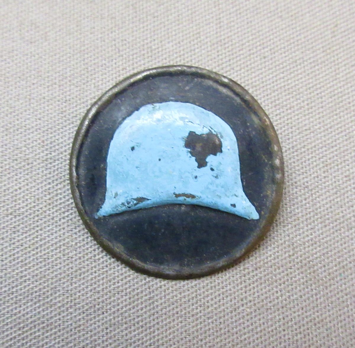 Made of stamped tin, and painted black for background, and the light blue on the helmet, the typical 93rd Div. insignia.