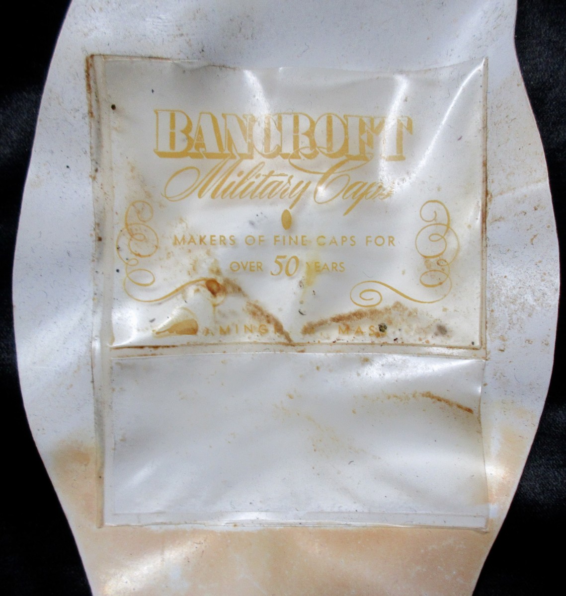Fine high relief gold and silver bullion eagle and crossed anchor insignia on this Bancroft cap.